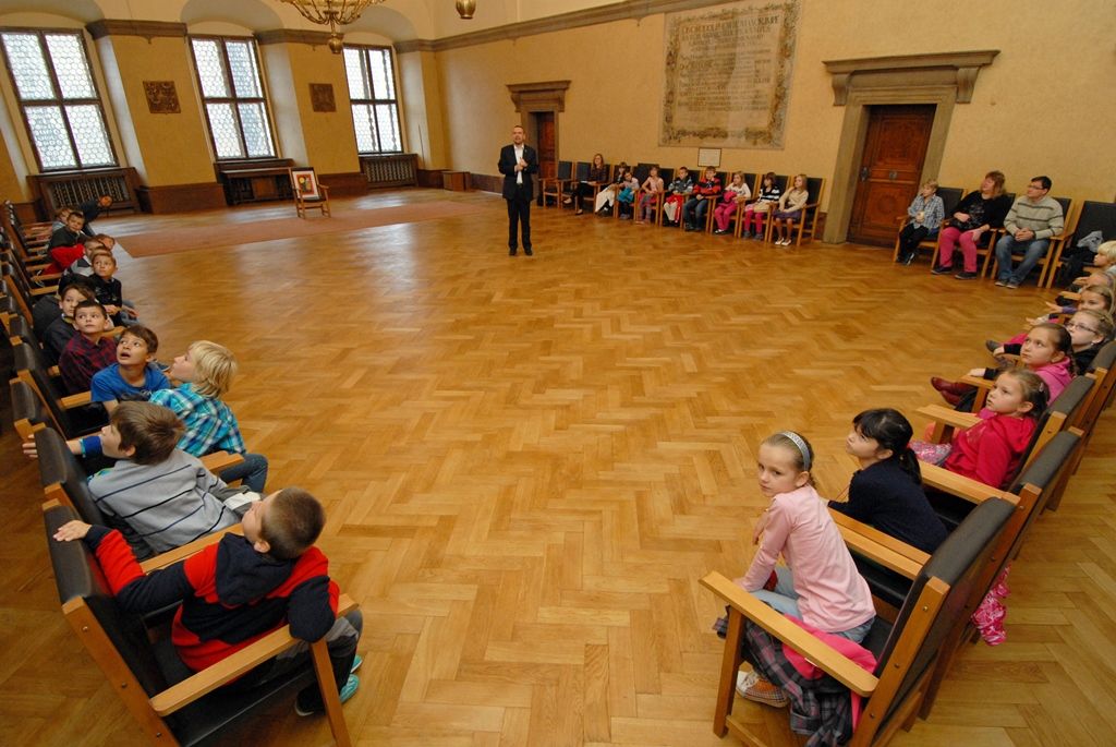 Dvacetiminutový exkurz primátora do historie radnice i města vystřídaly dotazy týkající se například stavby aquaparku, divadla nebo otázky spojené s postavením a pravomocemi funkce primátora.