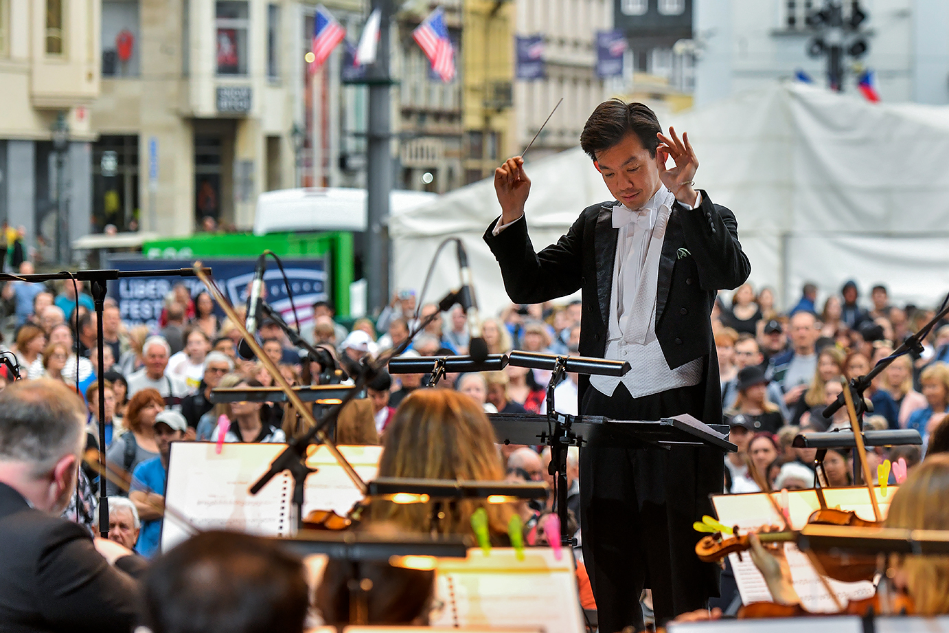 První večer letošních Slavností svobody patřil na náměstí Republiky Plzeňské filharmonii, která připravila večer složený ze známých melodií s titulem Plzeň zdraví Ameriku! S orchestrem, který vedl jeho šéfdirigent Chuhei Iwasaki, vystoupili Nina Horáková, Zbyněk Fric a Michaela Katráková.