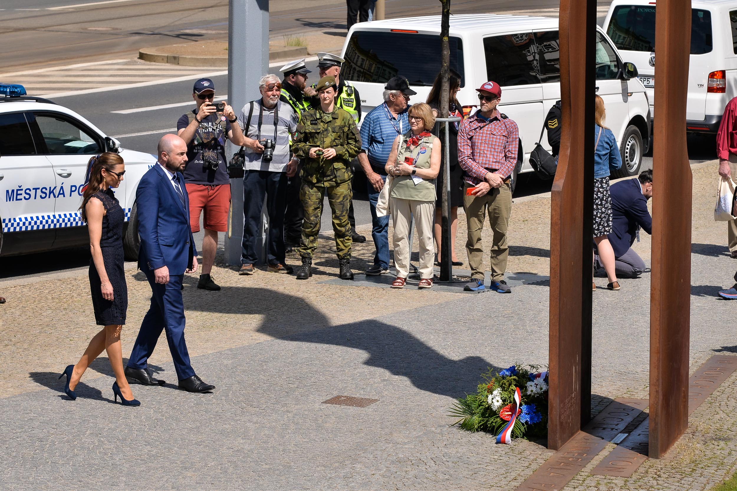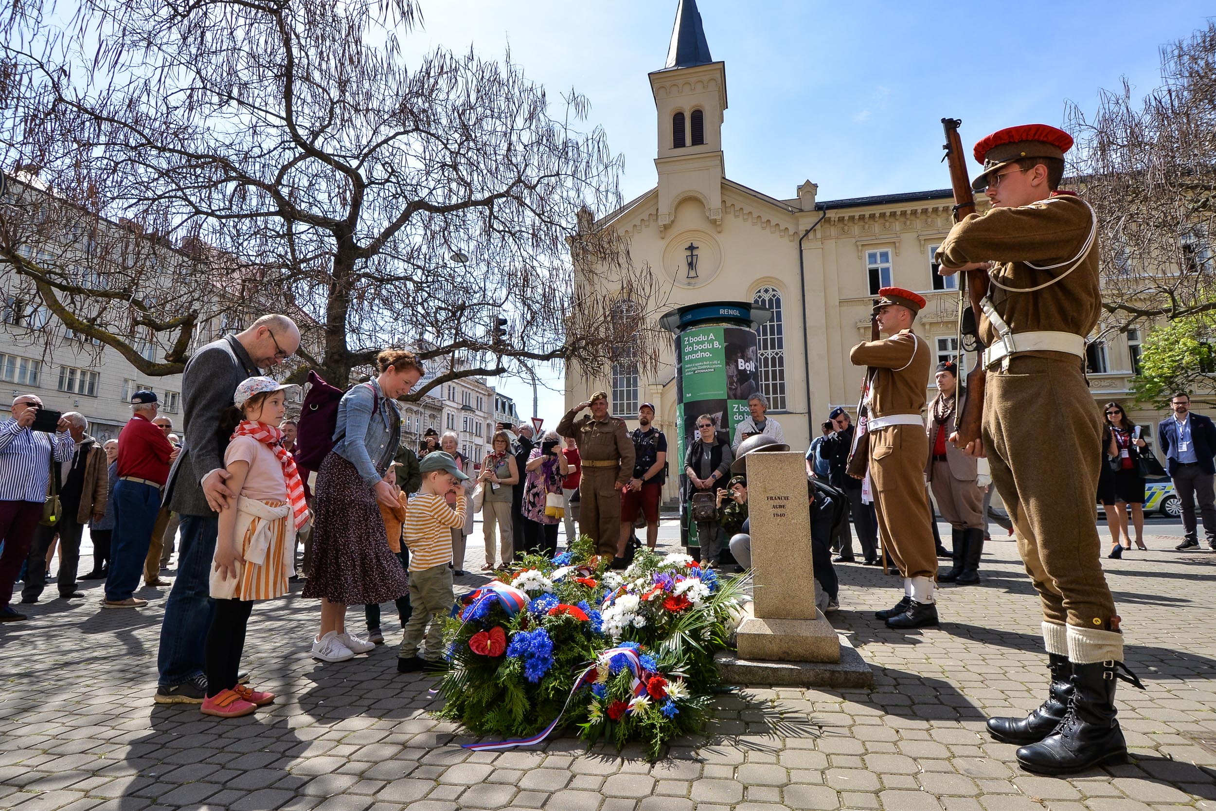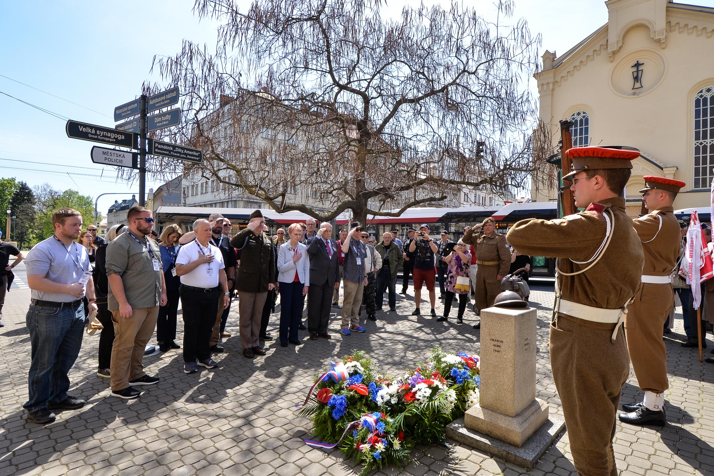 V Husově ulici byly položeny květiny i u pomníku československých vojáků bojujících na západní frontě v letech 1940–1945.