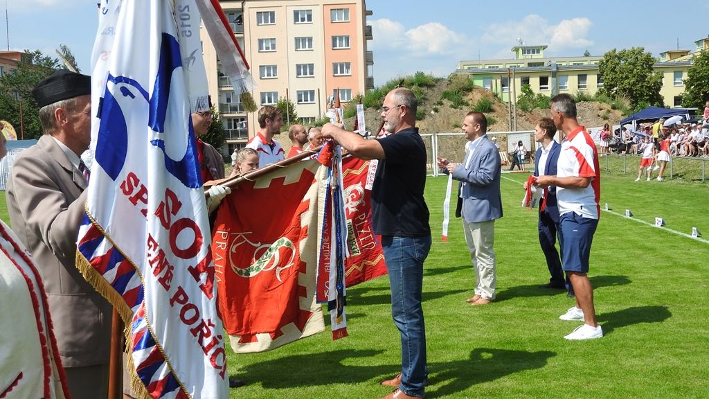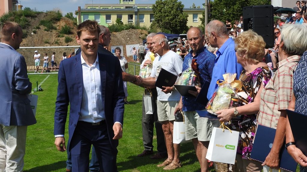Sletu sokolů se za město Plzeň zúčastnili primátor města Martin Zrzavecký společně s prvním náměstkem Martinem Baxou. Prezentujícím se sokolům rozdali stužky na jejich vlajky, které byly i více než sto let staré. Primátor se svým prvním náměstkem také ocenili nejlepší plavce, kteří se zúčastnili Plaveckého přeboru seniorů, jenž se odehrál ve dnech 7. a 8. června v plaveckém Bazénu Slovany. Ocenění si převzali pamětní list radního pro sport Petra Chvojky, dárkové předměty města Plzně, permanentku do bazénu a dárkové koše.