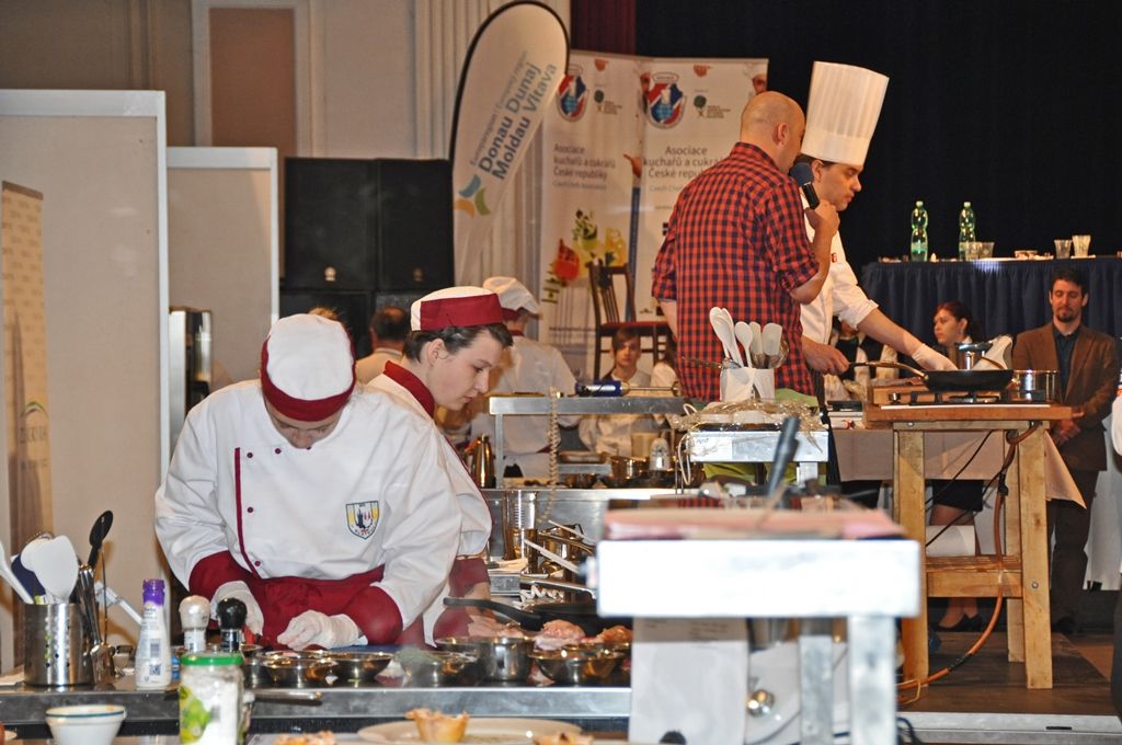 Tříčlenné týmy studentů středních gastronomických škol z Plzeňského kraje a Regensburgu se dnes před zraky poroty a veřejnosti utkaly v kuchařské soutěži „Vaříme to slow…“ v kulturním domě Peklo.