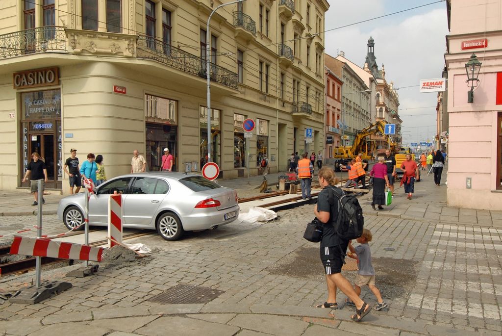 Rekonstrukční práce na čtyřech důležitých stavbách v centru města postupují podle plánu. Do poloviny srpna zůstanou dopravní omezení v zásadě stejná. Situace se změní od 1. srpna jen v souvislosti se stavebními pracemi na tramvajové trati v křižovatce Fügnerova, Anglické nábřeží. „Veškerá vozidla přijíždějící z Anglického nábřeží a nákladní auta z Fügnerovy ulice budou smět pokračovat jen ve směru ke křižovatce U Jána,“ upřesňuje Václav Lacyk, projektant a zároveň zástupce firmy, která má na starost koordinaci všech čtyř staveb. S omezením musejí počítat rovněž pěší, a to v lokalitě křižovatky Smetanovy sady, sady Pětatřicátníků, kterou od úterý 5. srpna začnou stavebníci upravovat. „V této souvislosti dojde k uzavření přechodů pro pěší přes obě ulice, zhruba v místě proti vstupu do Velkého divadla,“ doplňuje Václav Lacyk.