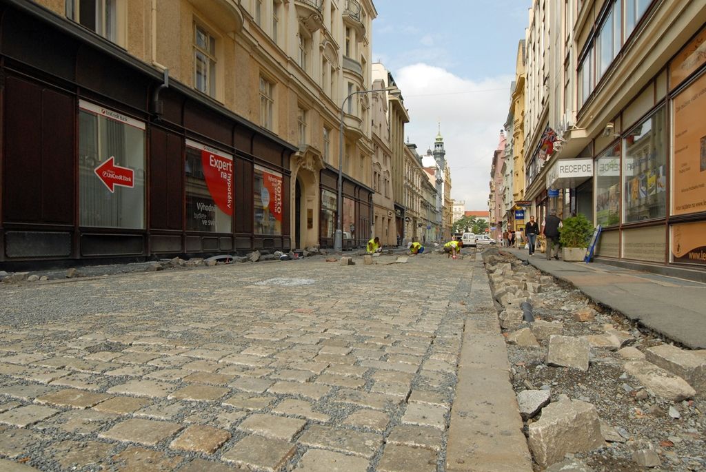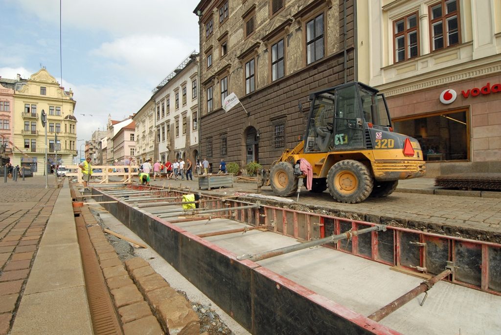 Od poloviny srpna by měla být znovu otevřena Solní ulice. „Tady už byly položeny panely BKV a pracuje se na usazování kolejí. Kompletně hotová a zadlážděná bude v polovině srpna,“ potvrzuje Václav Lacyk. Do konce srpna se počítá se skončením prací na tramvajové trati před radnicí.