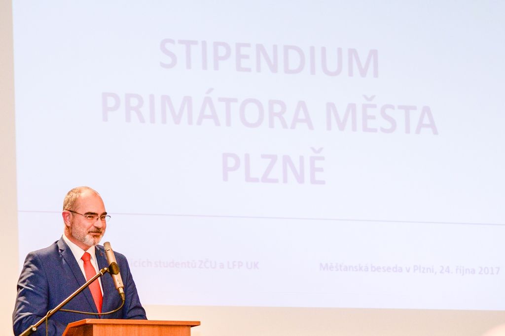 Deseti nejlepším studentům a studentkám Západočeské univerzity v Plzni (ZČU) a Lékařské fakulty Univerzity Karlovy v Plzni udělil stipendium města Plzně v úterý 18. října plzeňský primátor Martin Zrzavecký. Slavnostní akt se uskutečnil v plzeňské Měšťanské besedě. Při slavnosti zároveň rektor Západočeské univerzity Miroslav Holeček a hejtman Plzeňského kraje Josef Bernard rozdali dalším 26 studentům stipendia rektora ZČU v Plzni a Plzeňského kraje. Akce se zúčastnila také náměstkyně primátora pro oblast školství a sociálních věcí Eva Herinková.