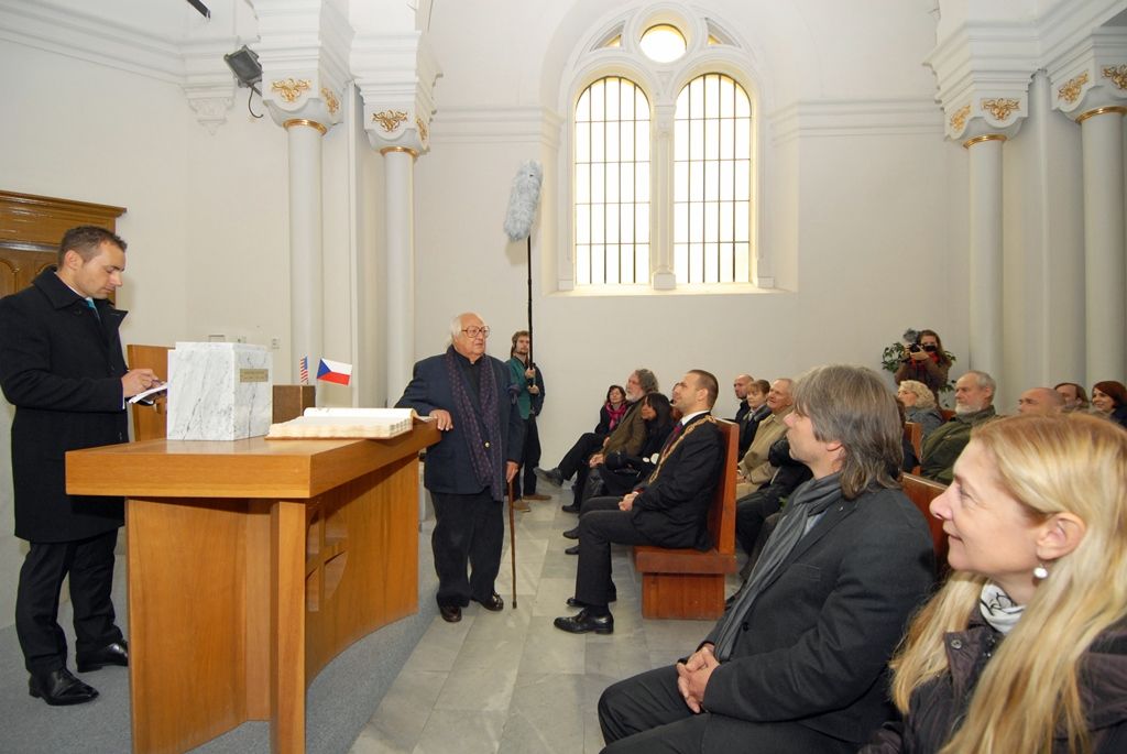 Aktu předcházelo vzpomínkové setkání v kapli sv. Václava, na kterém udělil primátor Martin Baxa Radoslavu Sutnarovi městskou historickou pečeť. „Setkáváme se zde v tento výjimečný okamžik, kdy se do našeho města vrací rodák Ladislav Sutnar a jeho žena Františka. Ladislav Sutnar byl osobností, kterou jsme si desetiletí nesměli a nemohli připomínat. Město Plzeň je pyšné na to, že Ladislava Sutnara může takto uctít,“ uvedl mimo jiné primátor Baxa. Poté věnoval plaketu a pamětní list opatřený otiskem historické pečetě města Radoslavu Sutnarovi za soustavnou péči o dílo svého otce a za velkorysé předávání uměleckého odkazu jeho rodnému městu.