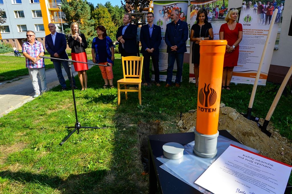 Mezigenerační a dobrovolnické centrum TOTEM v Kaznějovské ulici v Plzni zahájilo v úterý 19. září jubilejní dvacátou sezonu své činnosti. Součástí slavnostního aktu bylo uložení schránky s dokumenty o činnosti TOTEMU do vyhloubeného otvoru na pozemku centra. Schránku obsahující i listinu se vzkazy přítomných účastníků uložily do země ředitelka centra Vlasta Faiferlíková s kolegyní Petrou Bláhovou. Schránka má být otevřena za 20 let.