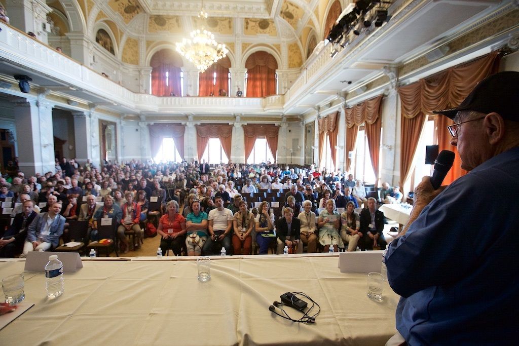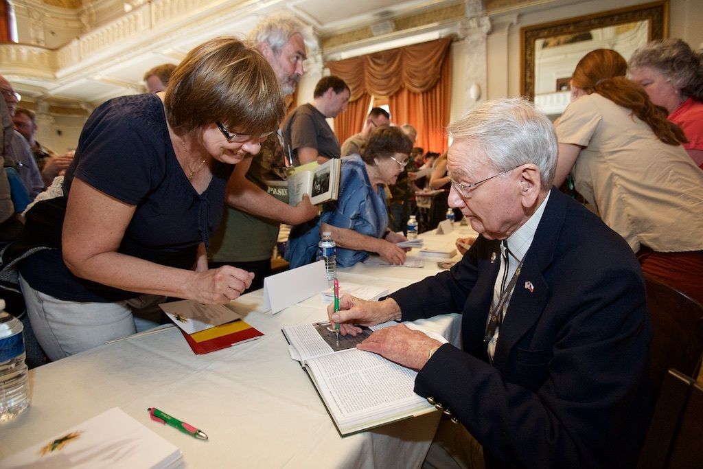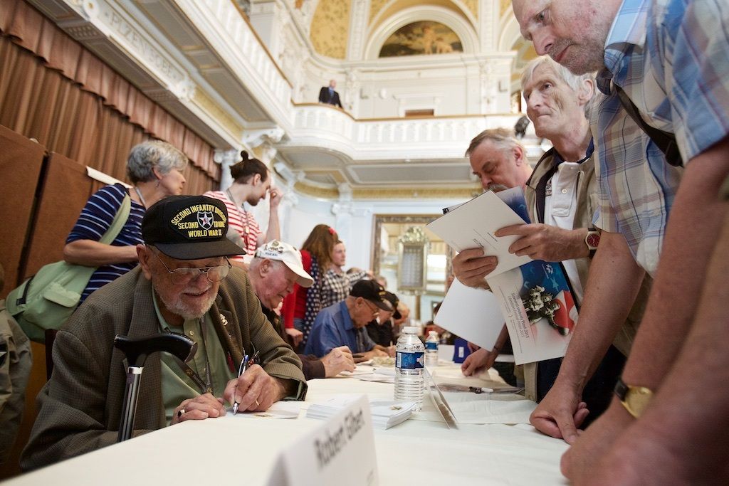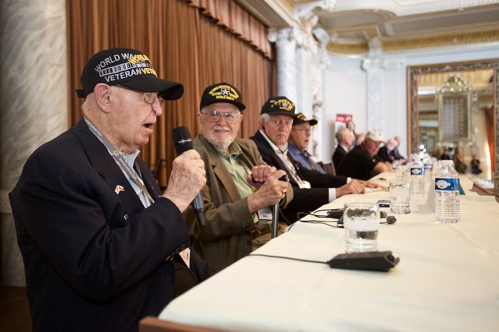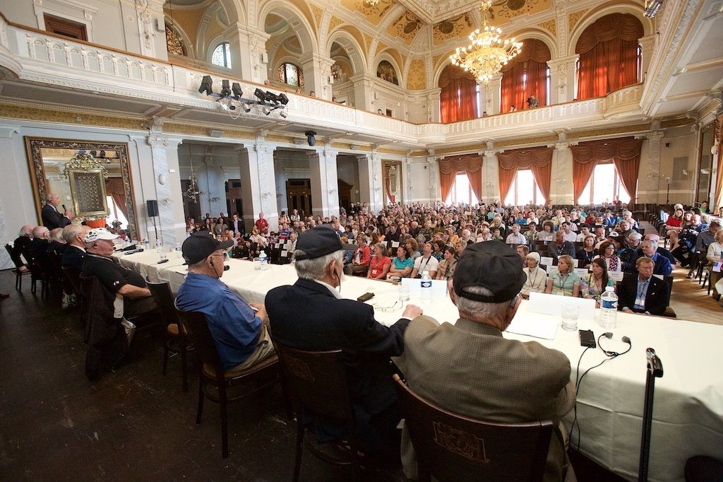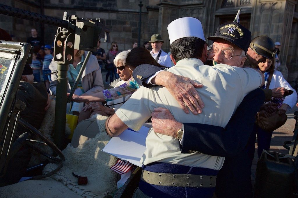 Třetí den Slavností svobody v Plzni přinesl opět celou řadu silných okamžiků. Například už dopoledne lidé zaplnili Velký sál Měšťanské besedy, kam přišli diskutovat s veterány. Ti vyprávěli své vzpomínky, lidé jim děkovali za osvobození, ale i poválečnou materiální pomoc. Dojemný byl dětský dotaz „Báli jste se?“. Veteráni svorně odpovídali, že ano, ale že v sobě cítili velikou sílu postavit se nepříteli. Belgičtí hrdinové zavzpomínali na svůj vstup do odbojového hnutí a také na to, jak pronikali přes Němce k Američanům, aby se přidali do armády G. S. Pattona k 17. praporu. I Plzeňané přidali několik vzpomínek na osvobození.