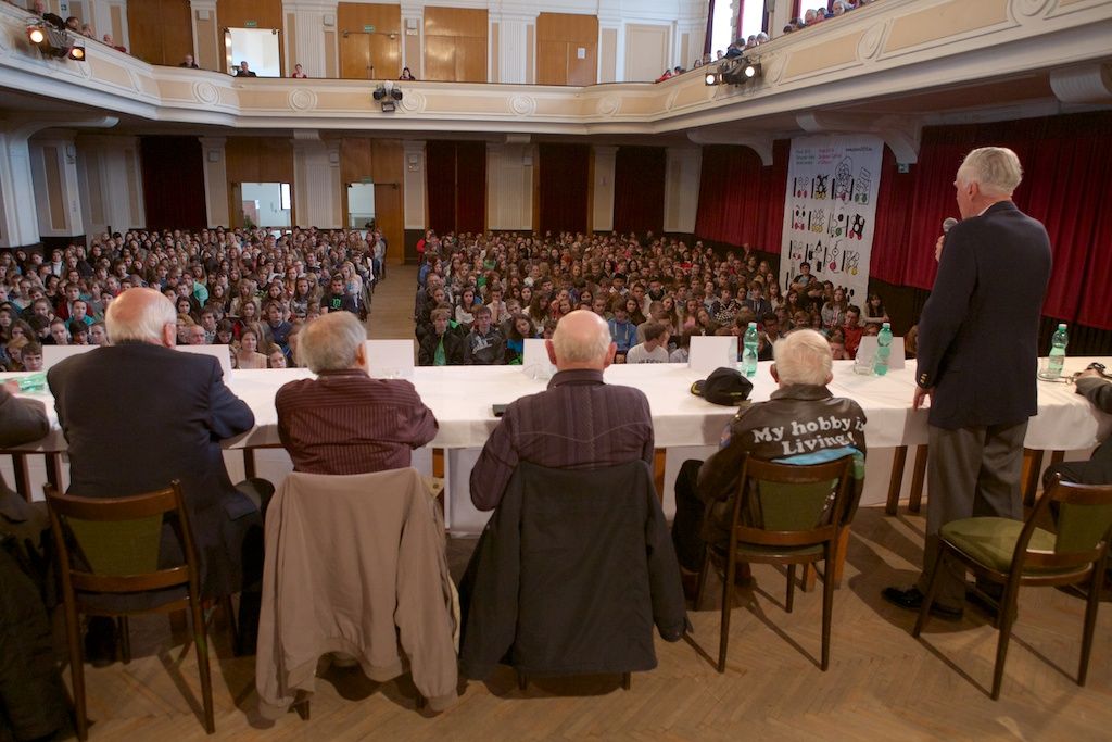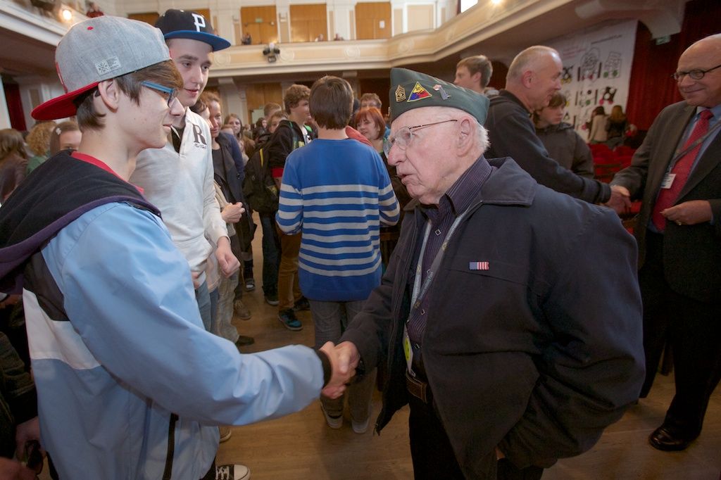 „Když jsme 7. května 1945 dorazili k vám, již od předměstí na nás čekali lidé s květinami a radostně nás vítali. Město bylo z části zničené a Američané zde odráželi poslední německý odpor. Za války nebyly telefony, došel benzín, a tak se muselo všude chodit pěšky nebo na kole. Okupovaní obyvatelé velmi strádali. Němci všechno zabrali, lidé dostávali potraviny na příděl. Byl hlad, nebyla práce a žili jsme v chudobě po několik let,“ zaznělo dnes ve velkém sále kulturního domu Peklo od belgického veterána José Schindfessela. Jeho vyprávění a vzpomínky dalších belgických, ale také amerických veteránů, si přišly poslechnout stovky školáků a studentů plzeňských základních a středních škol. Přivítal je Charles Noble, syn plukovníka Nobleho, který se podílel na osvobozování Plzně stejně jako George Thompson, Stephen Mason, Michel Gilain, José Schindfessel, Louis Gihoul, Arthur Otto nebo Hubert Rauw, kteří na besedu do Pekla přišli.