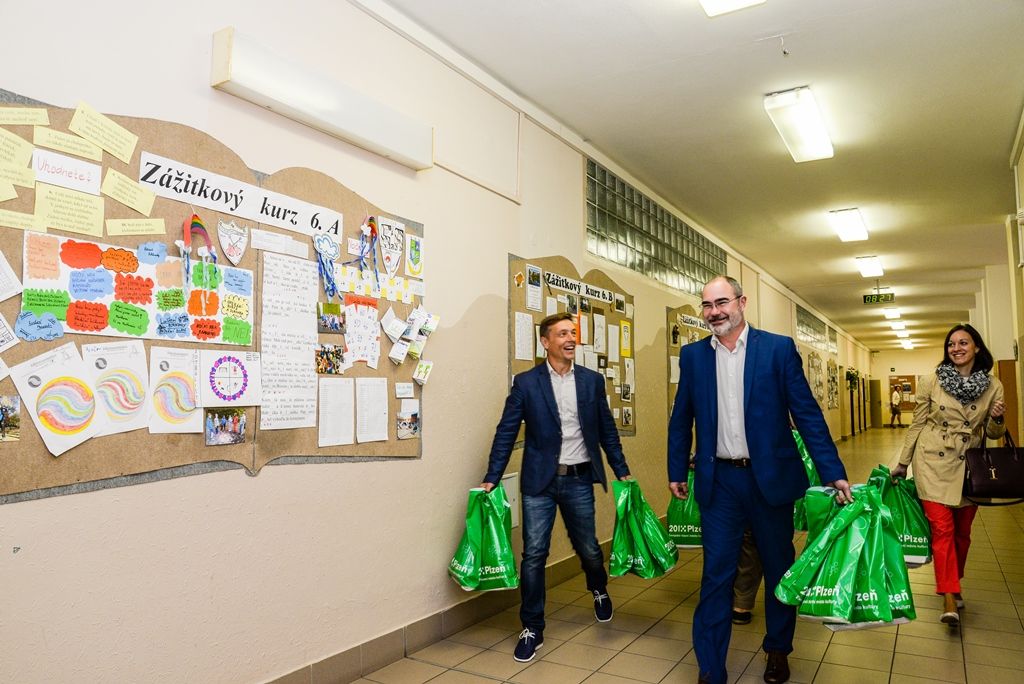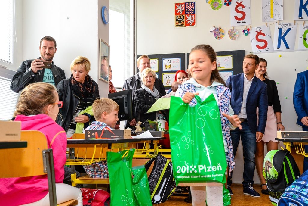 Přes 1800 dětí dnes v Plzni nastoupilo do prvních tříd, je to o něco méně než vloni. Celkem se prvňáčkům ve 26 školách zřizovaných městem otevřelo 78 tříd. Mnohé z dětí přitom čekalo netradiční zahájení. Například v Tyršově ZŠ a MŠ připravili Putování pohádkovým příběhem, ve 28. základní škole na nejmenší čekal ceremoniál s pasováním na prvňáky. První školní den si nenechal ujít ani primátor města Plzně Martin Zrzavecký, navštívil sportovně zaměřenou 33. základní školu v ulici Terezie Brzkové, kam chodil jako žák, jeho náměstkyně pro oblast školství a sociálních věcí Eva Herinková zavítala na 11. základní školu.