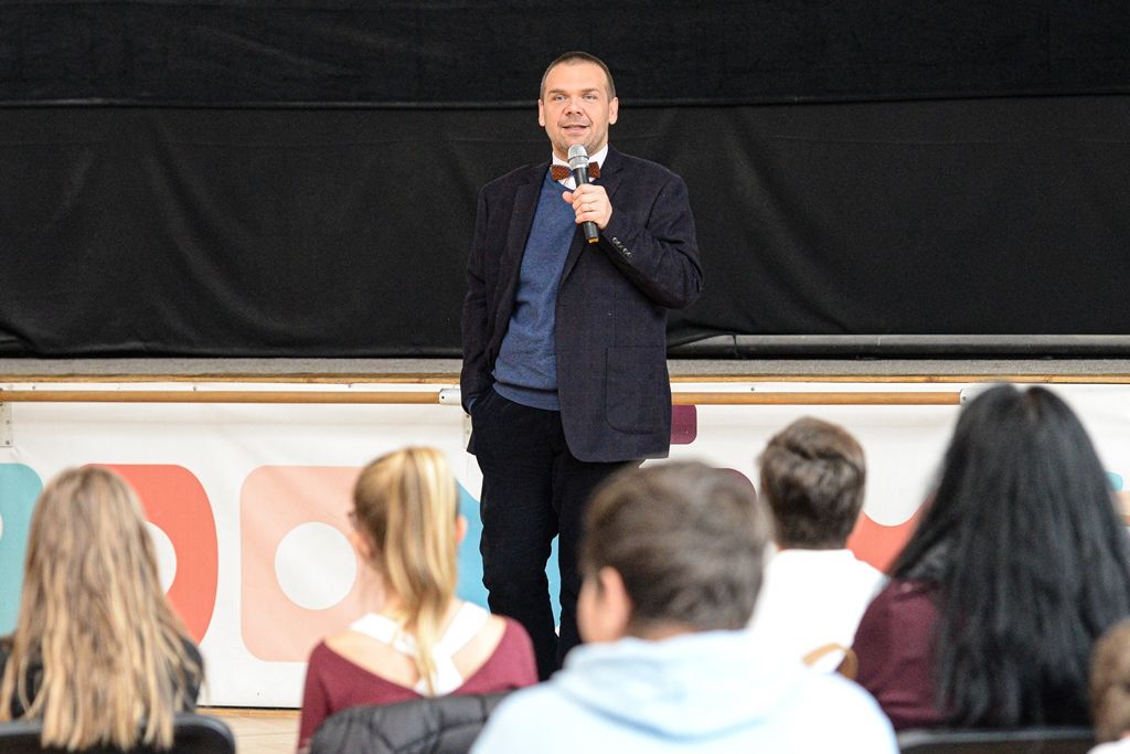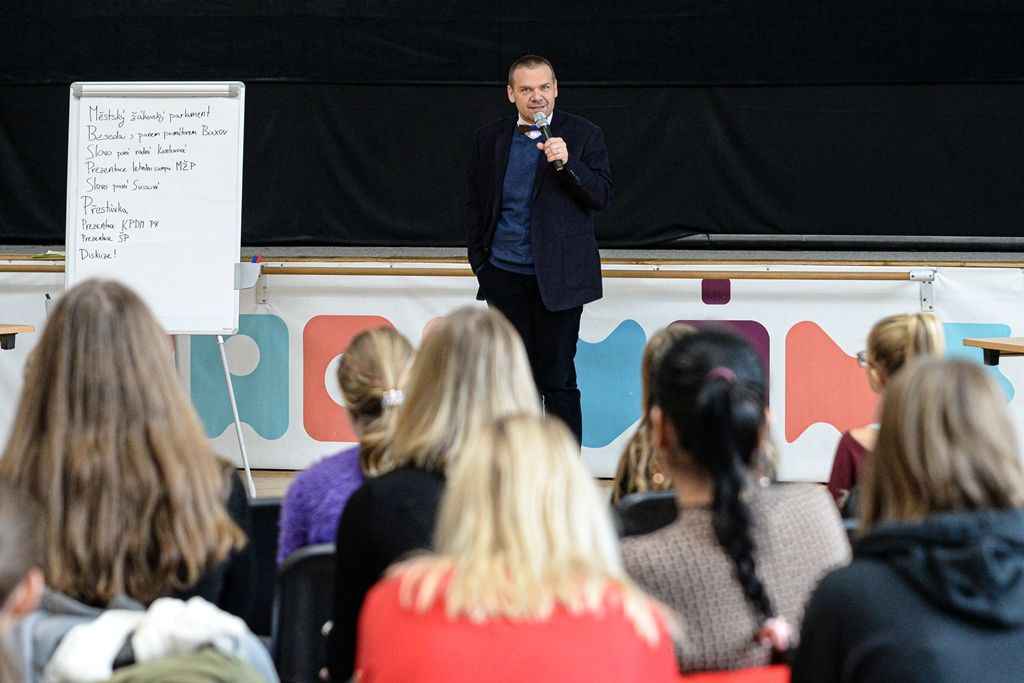 Součástí programu byla beseda zástupců městského a krajského parlamentu s primátorem Martinem Baxou. „Oceňuji vaši snahu zabývat se možnostmi, jak zlepšovat své školní prostředí,“ řekl v úvodu debaty přítomným studentům primátor Martin Baxa. Nejčastější otázky studentů v besedě se týkaly městské hromadné dopravy, dopravních staveb v Plzni a především nadcházejících oslav 30. výročí od sametové revoluce.