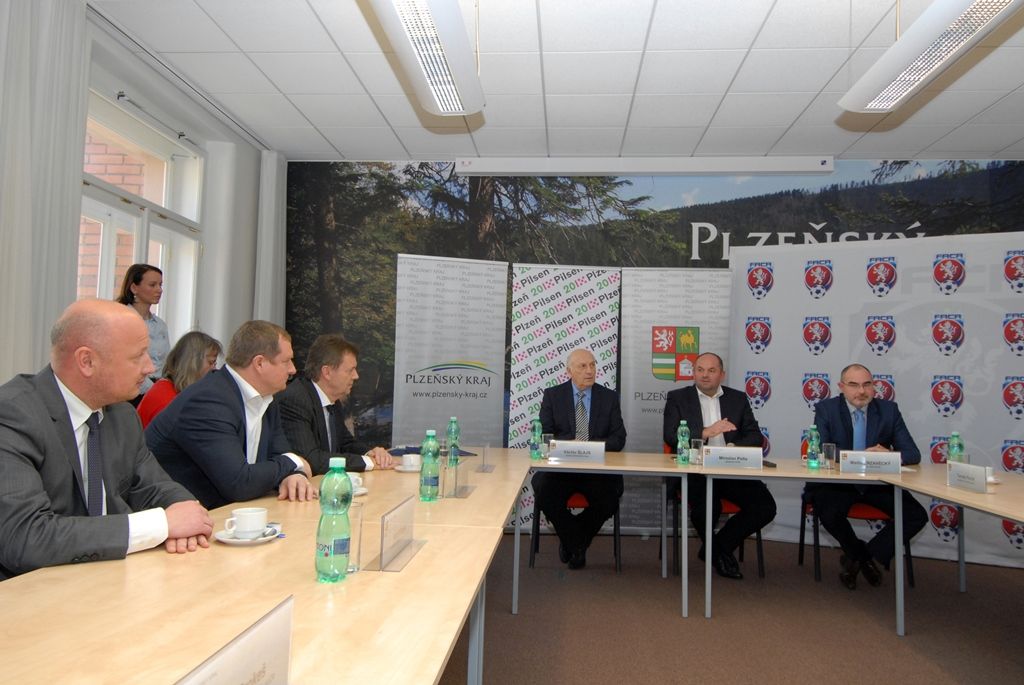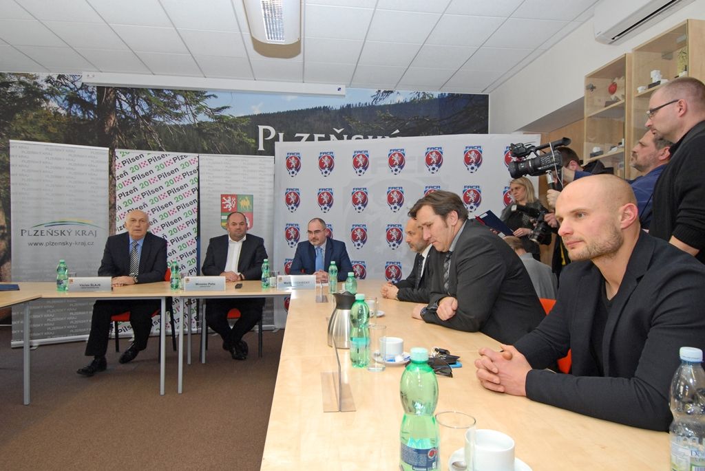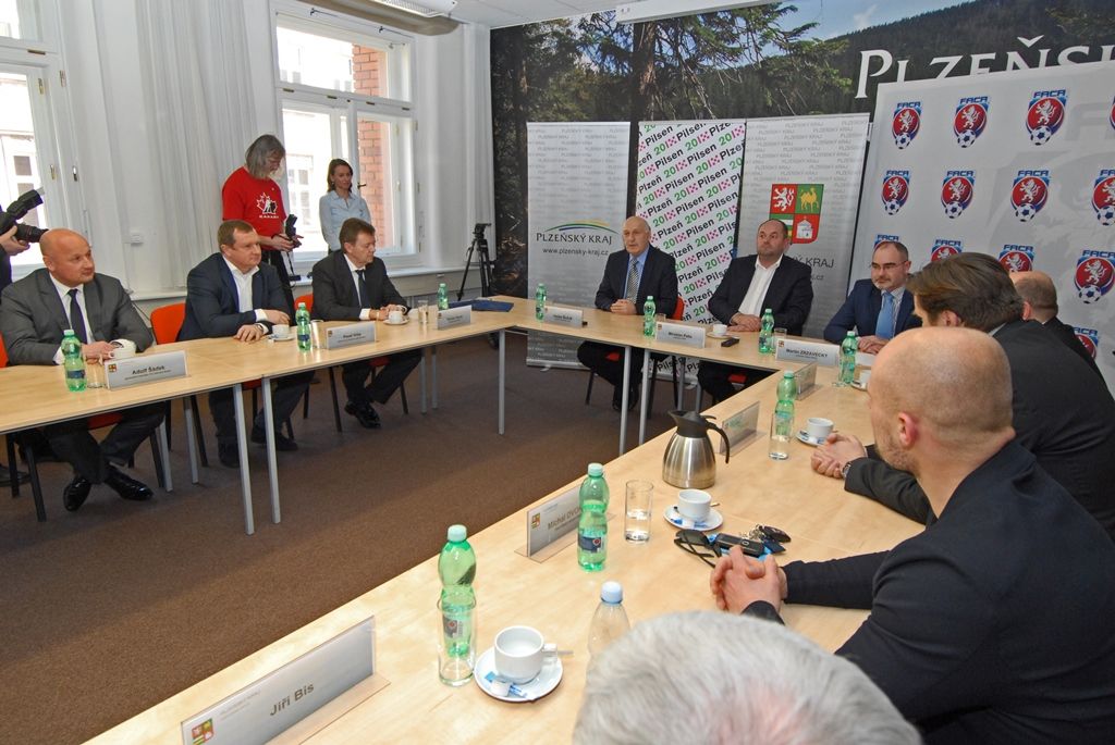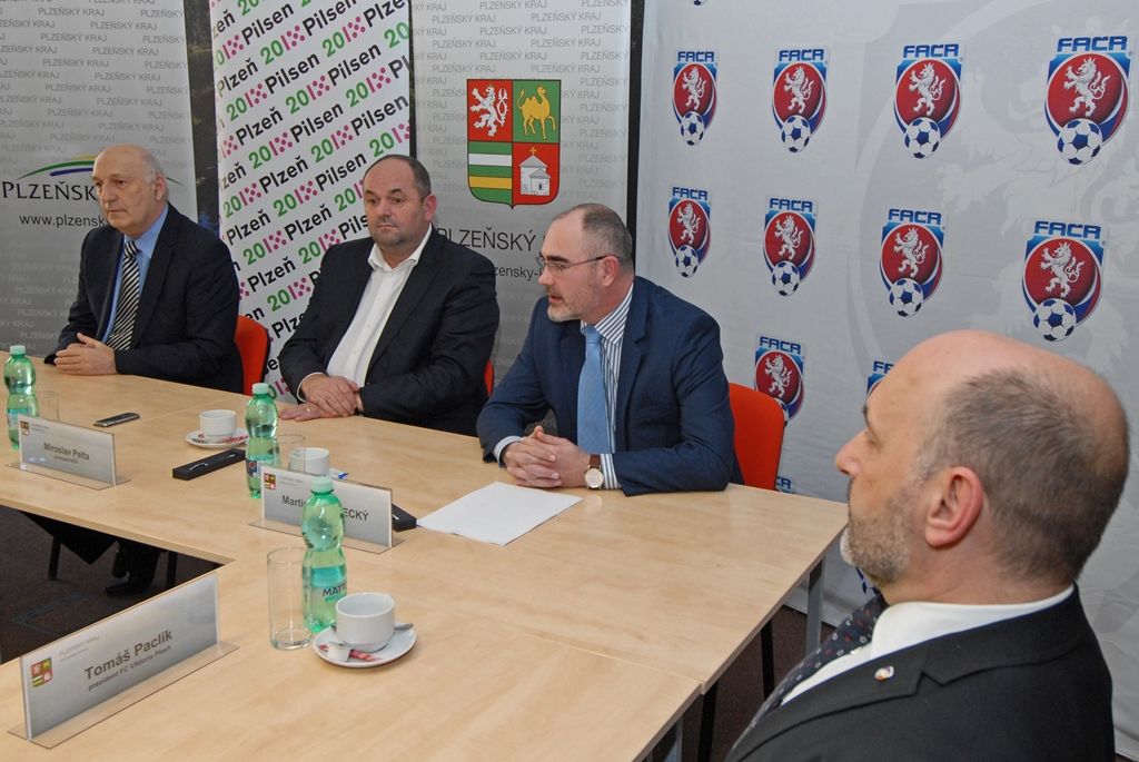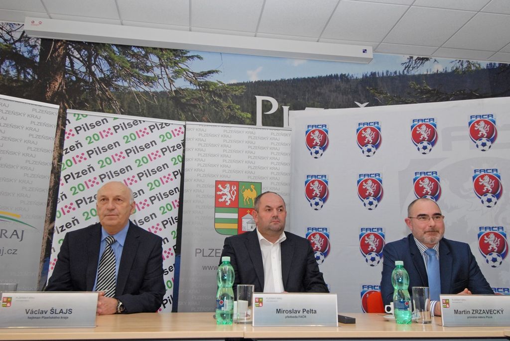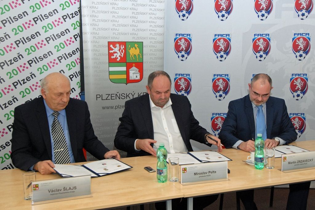 Memorandum o spolupráci podepsali v pátek 27. února 2015 předseda FAČR Miroslav Pelta, hejtman Plzeňského kraje Václav Šlajs a primátor města Plzně Martin Zrzavecký.
