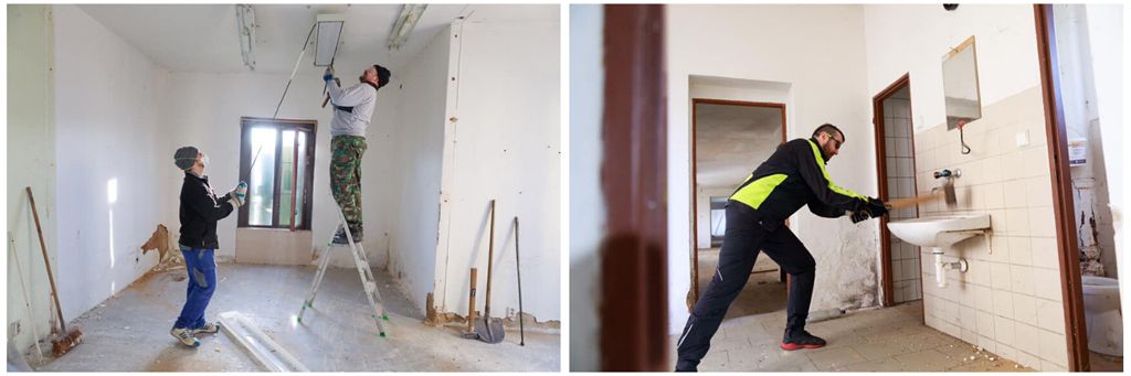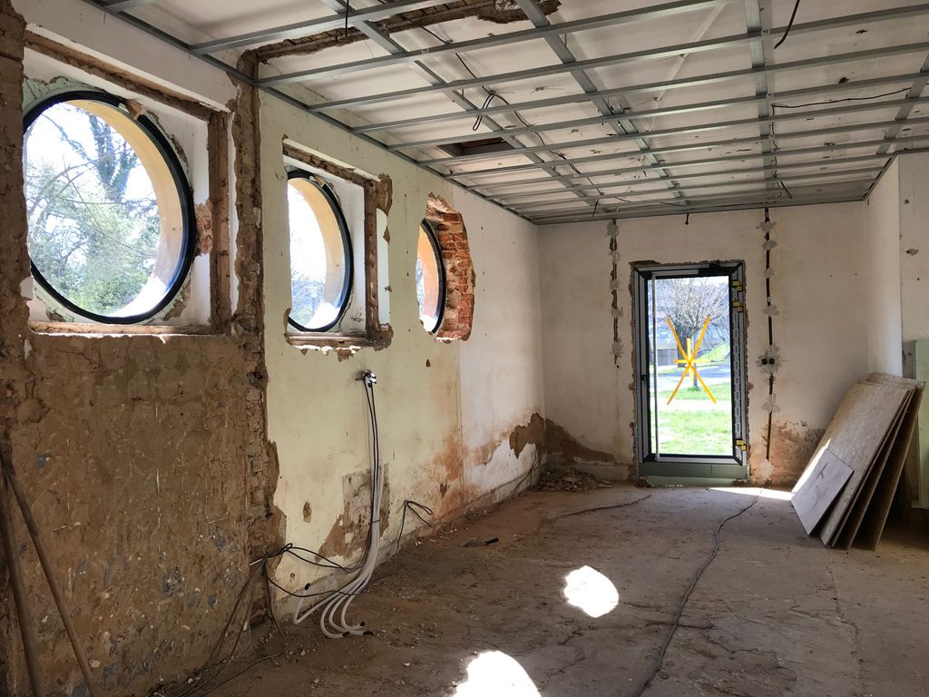 Hned po podpisu nájemní smlouvy jsme s ostatními ‚bikehearťáky‘ začali s dobrovolnickými vyklízecími brigádami, aby se klempíři dostali na střechu a uvnitř se mohlo začít pracovat. Objekt je od loňského roku veden jako nemovitá kulturní památka, takže architekti od počátečních příprav projektu komunikují s Národním památkovým ústavem. Práce, ke kterým je potřeba odborných znalostí už necháváme na řemeslnících. Na rekonstrukci pracují především živnostníci z Plzně a okolí, ale třeba okna nám dělali pánové ze Zlína, se kterými dlouhodobě spolupracuje studio Kamil Mrva Architects, a kteří si poradili s atypickými kulatými okny.