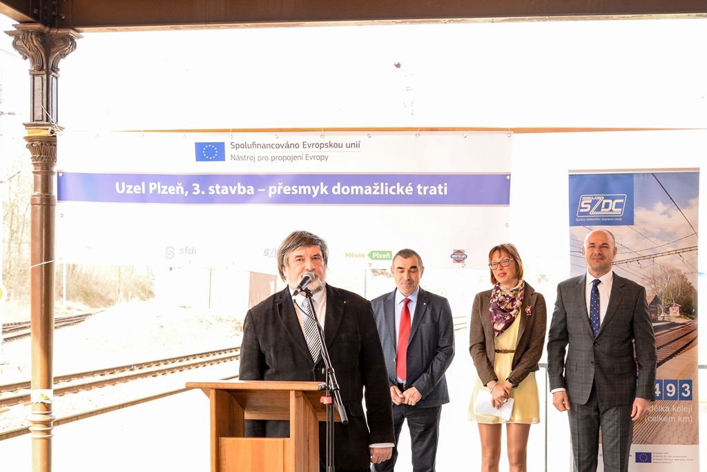 Správa železniční dopravní cesty (SŽDC) zahájila ve středu 4. dubna slavnostně třetí část modernizace uzlu Plzeň. Na základní kámen poklepal symbolicky plzeňský primátor Martin Zrzavecký a několik dalších hostů slavnostního aktu. Z vedení Plzně se zúčastnili ekonomický náměstek primátora Pavel Kotas a náměstek primátora pro oblast dopravy a životního prostředí Petr Náhlík.