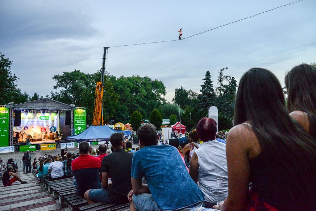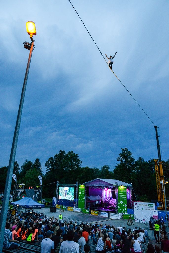 Stovky Plzeňanů si dnes nenechaly ujít show, při níž byla oficiálně zahájena desetidenní Letní Sportmanie Plzeň 2017, atraktivní sportovní akce pro celé rodiny. Lidem v areálu za OC Plzeň Plaza předvedli jedinečné výkony highliner Petr Voříšek a lighlinerka Anna Kuchařová. Prošli se po pásce napnuté ve výšce 25 metrů nad zemí. Přechod byl unikátní v tom, že lano držely dva jeřáby. Ze střechy OC Plzeň Plaza poté slanili plzeňský primátor Martin Zrzavecký, radní pro oblast podpory podnikání a sportu Petr Chvojka a hejtman Plzeňského kraje Josef Bernard. Diváci si užili i vystoupení na slackline v podání Michala Pírka a Lukáše Černého. Večer vyvrcholil koncertem skupiny Support Lesbiens.
