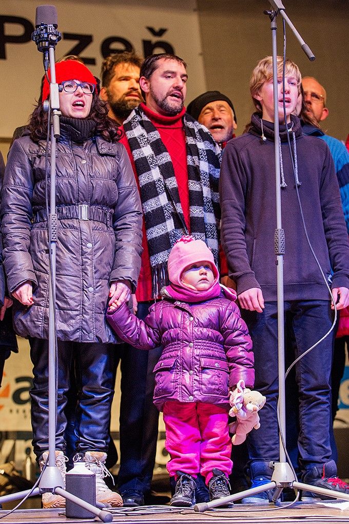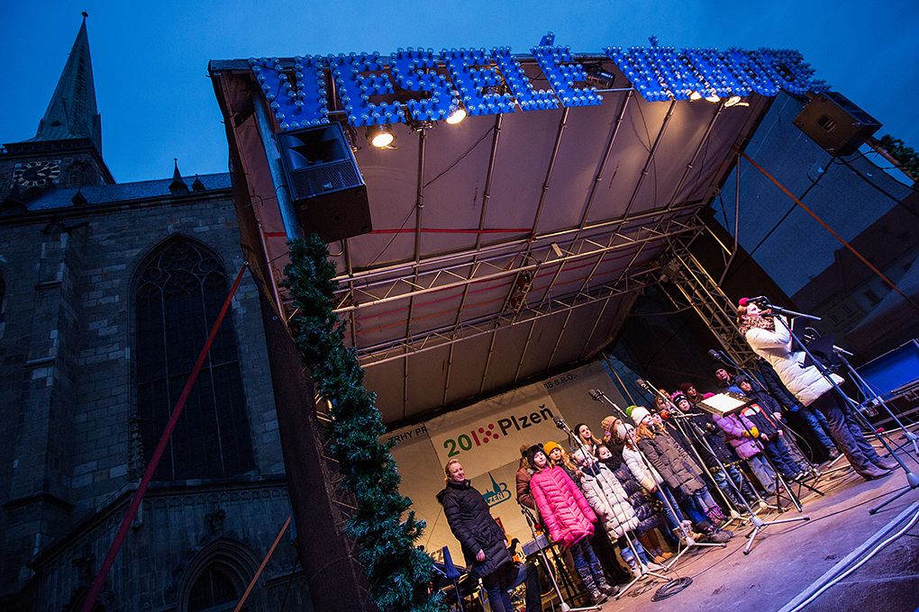 Svá přání přidal i plzeňský biskup František Radkovský, podle něhož je advent dobou určenou k zamyšlení, i on zmínil hodnoty, jakými jsou vztahy mezi nejbližšími. Spolu se třemi dětmi, úspěšnými účastníky letošní Olympiády dětí a mládeže, pak primátor i biskup stromek rozsvítili. Čtrnáctimetrovou douglasku tisolistou na náměstí Republiky osvítily tisíce světýlek, stala se tak dominantou náměstí, jehož atmosféru dotváří velký dřevěný betlém, zvonice a tradiční trhy se staročeským trdelníkem, svařeným vínem i vánočními předměty. Krásné Vánoce letos popřála Plzeňanům i Bára Basiková, jež lidem po rozsvícení stromku zazpívala, a to i v doprovodu souboru Andílci.