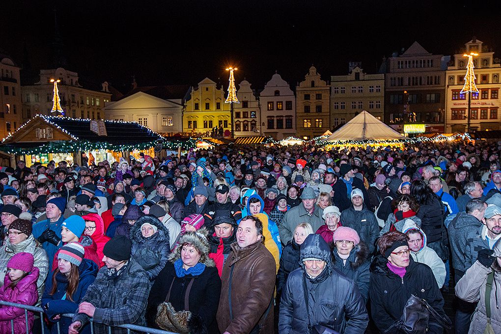Vánoční strom zdobí náměstí, rozsvícení přihlížely tisíce Plzeňanů