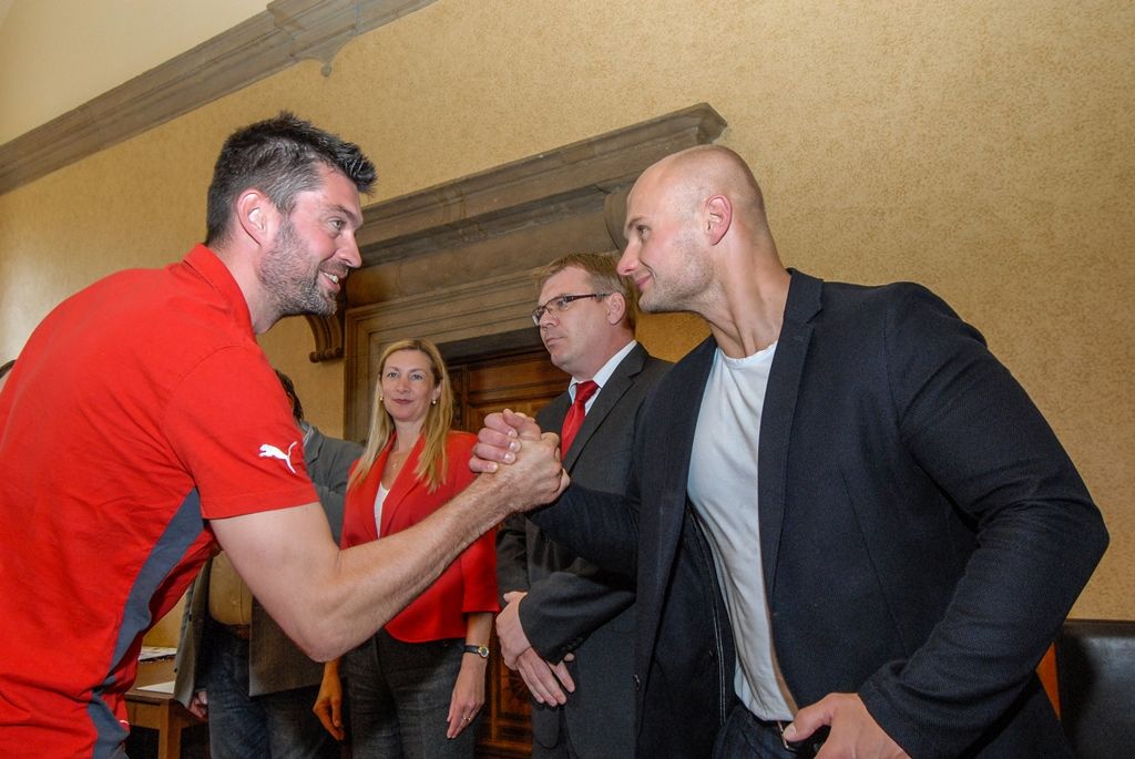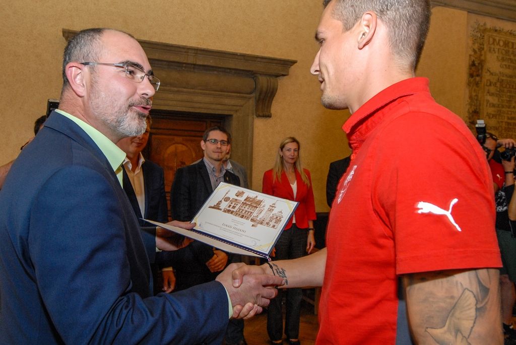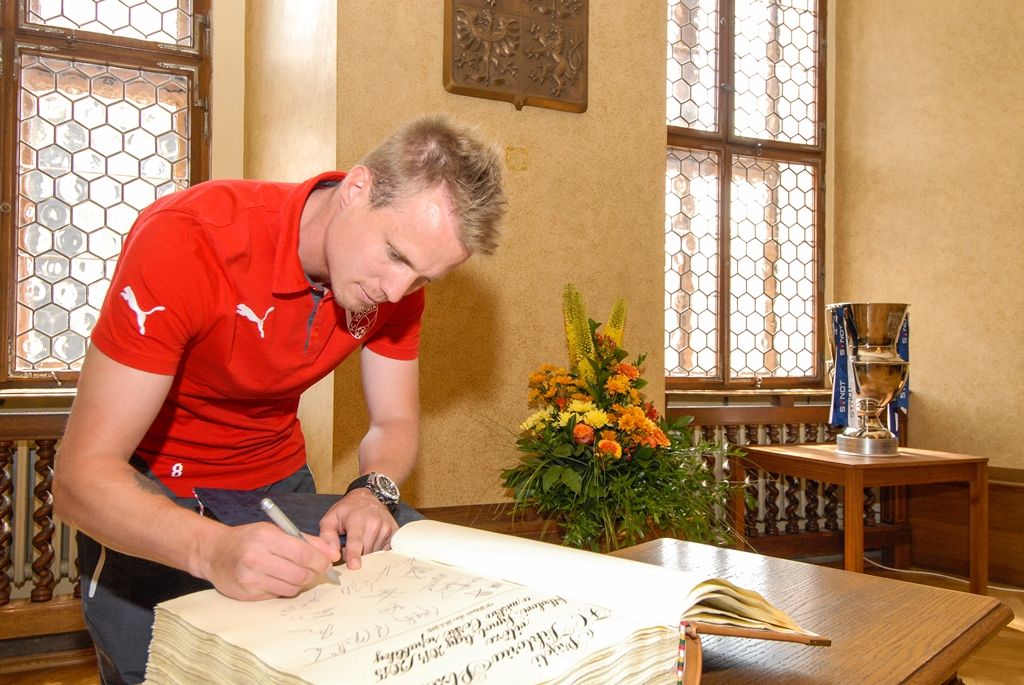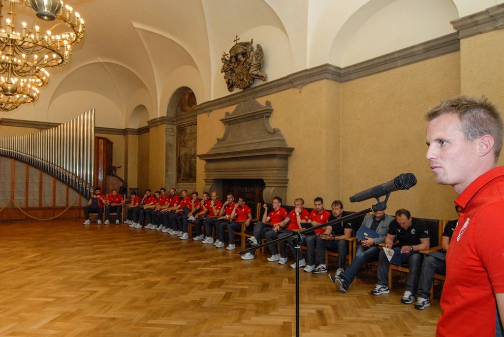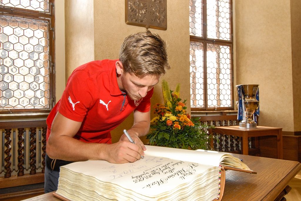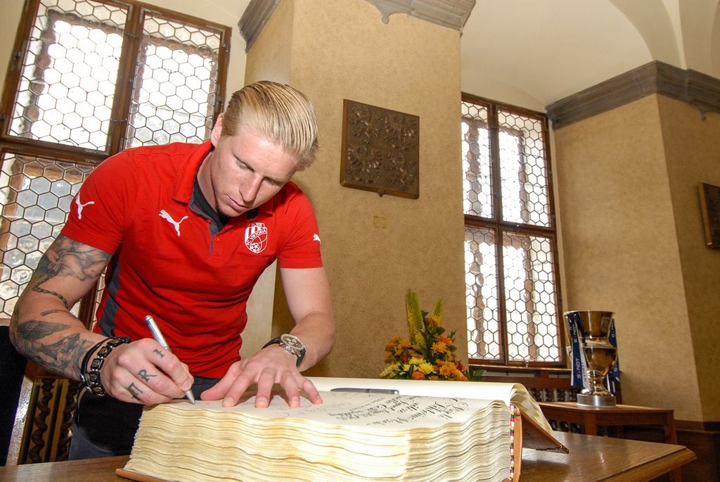 Primátor města Plzně Martin Zrzavecký a jeho náměstci i radní přijali dnes hráče a vedení klubu FC Viktoria Plzeň. Členům úspěšného plzeňského týmu, jenž nedávno získal již třetí mistrovský titul a díky tomu opět stojí před branou Ligy mistrů, zástupci města poděkovali a předali pamětní listy. Setkání předcházel podpis smlouvy, díky níž letos dostane FC Viktoria Plzeň na své mládežnické oddíly s více než 350 dětmi a mladými lidmi 1,3 milionu korun.