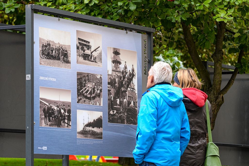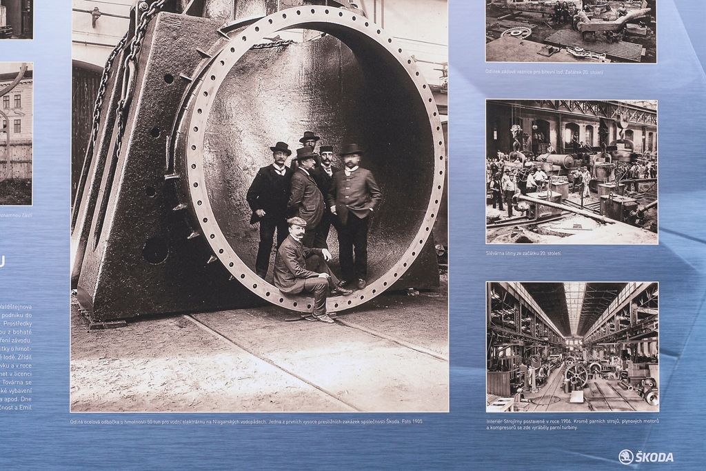 Fotografie, které většinou pocházejí ze Státního oblastního archivu v Plzni a archivu Škoda Plzeň, ukazují přerod zprvu skromného podniku v továrnu, která se vyrovnala nejvýznamnějším světovým strojírenským závodům, a v mnoha případech je i předčila. Na panelech se ale zájemci dozví i o životě Emila Škoda. Jeden z panelů je také věnován tomu, jak Škodovka spoluvytvářela podobu města. Například pro zimní stadion v Plzni dodala Škodovka v letech 1968–69 ocelovou konstrukci o hmotnosti 591 tun. V šedesátých letech minulého století připravila hlavní tribunu sportovního stadionu ve Štruncových sadech pro sedm tisíc diváků.