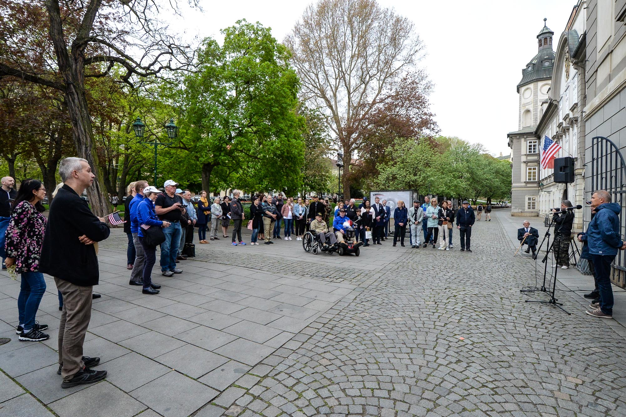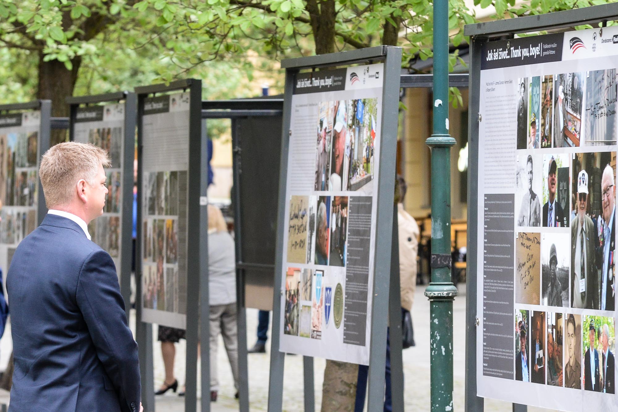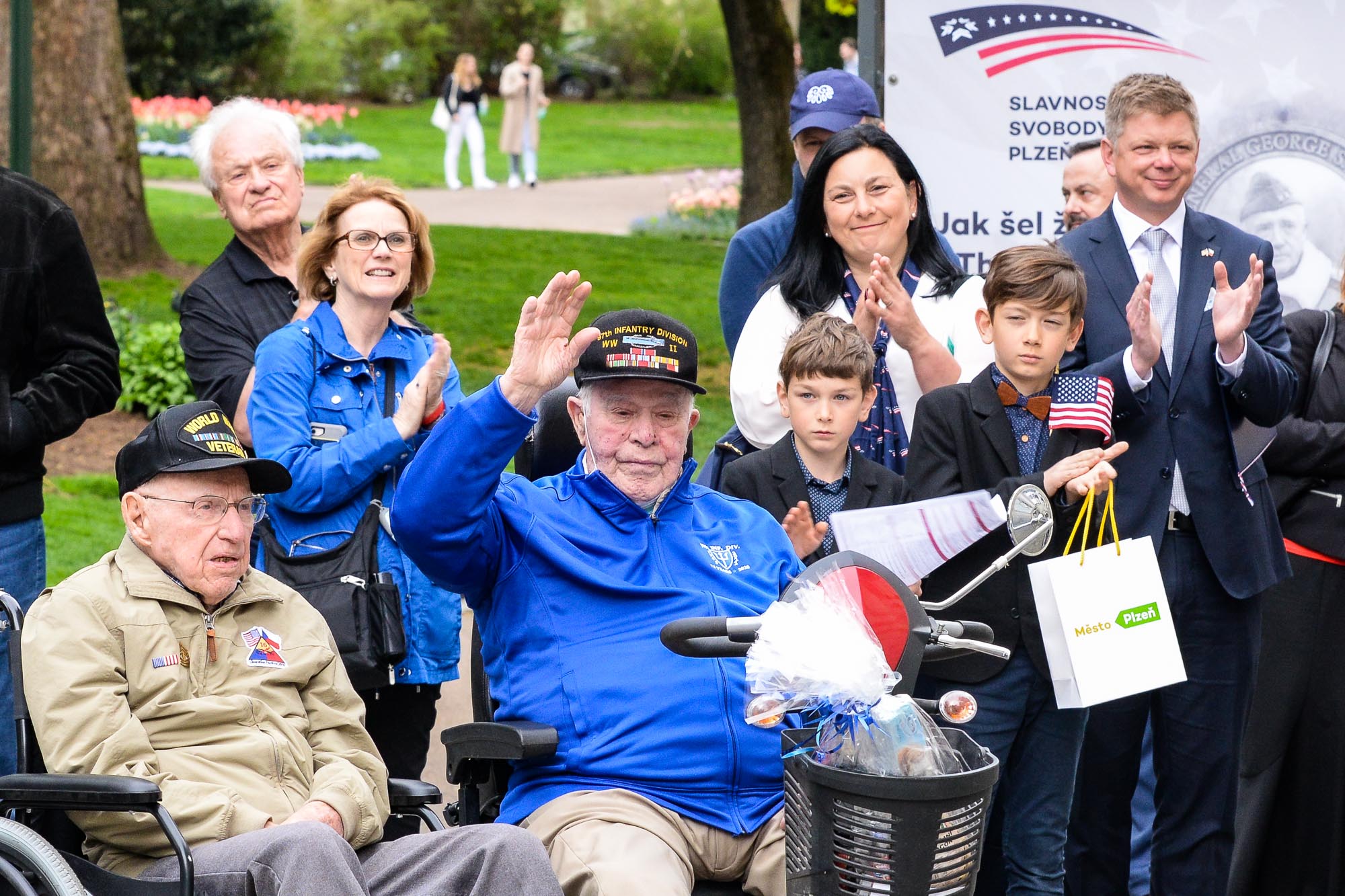 Vernisáže se osobně zúčastnili dva američtí veteráni s rodinami a přáteli, kteří přijeli na letošní Slavnosti svobody. „Česká republika je mým druhým domovem. Má žena byla původem z Čech, moji přátelé na studiích byli Češi, vyrůstal jsem s komunitou českých farmářů v Texasu, od nichž jsem se naučil české slovo ‚pivo‘. Cítím se s vámi dobře a jsem v Plzni rád. Uvidíme, zda mi to věk dovolí i v příštím roce, přeci jen je mi už 97 let,“ sdělil George Thompson.