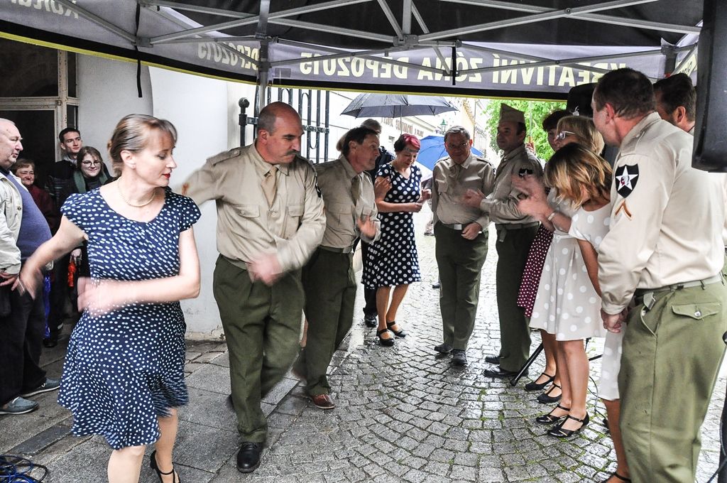 I přes nepřízeň počasí se při zahájení výstavy tančil swing na autentickou nahrávku Beer Barrel Polka v podání orchestru Glenna Millera z roku 1942.
