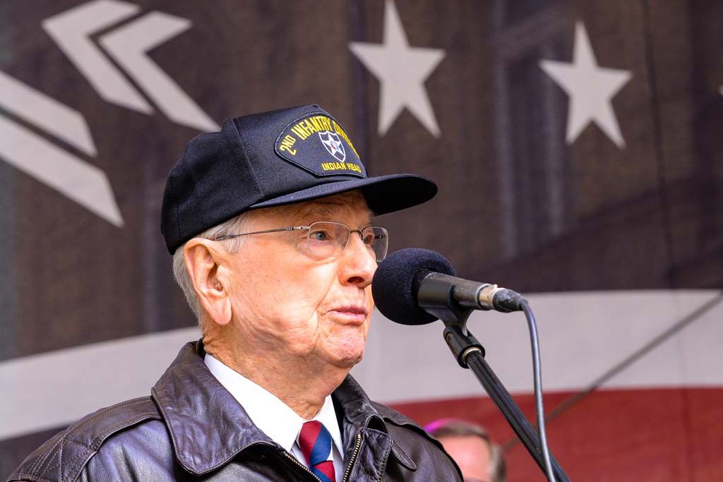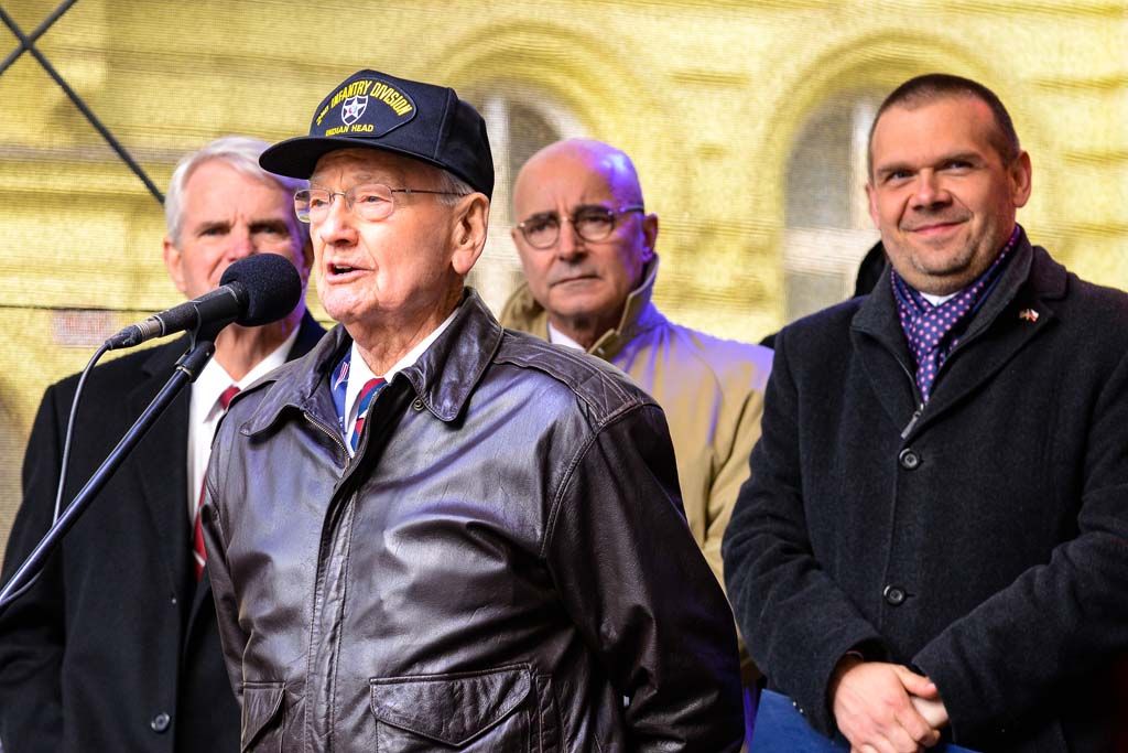 „Srdce nám radostí poskočí, když vidíme, že tu můžete žít svobodně a volně, což jste po dlouhou dobu nemohli. To je naše odměna. Ani v temných dobách v letech 1948 až do listopadu 1989 jsme ve vás nikdy neztratili víru, pořád jsme věřili, protože jsme věděli, jací jsou tu lidé. Znali jsme vaše rodiče, prarodiče, praprarodiče a věděli jsme, že vyznávají stejné hodnoty, jaké vyznáváme my. Vnímám demokracii jako něco, co vytváří volnost a svobodu,“ řekl při vzpomínkovém aktu válečný veterán Earl Ingram, jenž letos v září oslaví 97. narozeniny. Do Plzně přišel v květnu 1945 jako voják 2. pěší divize americké armády a po válce působil jako profesionální voják. Podle Earla Ingrama je nutné nadále předávat dětem a dalším generacím informace o tom, jak se události skutečně děly. „Je nutné se tomu věnovat a nikdy nepolevit, ani jeden jediný den. Každý z nás dospělých, co tu dnes stojíme, rozumí slovům svoboda a volnost. Úkolem je tyto hodnoty uchovat. Přejeme vám, abyste žili ve svobodě a spravedlnosti navždy,“ dodal Earl Ingram.