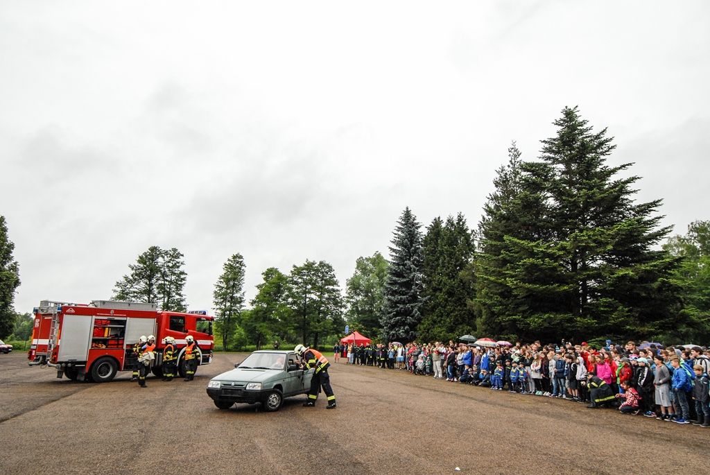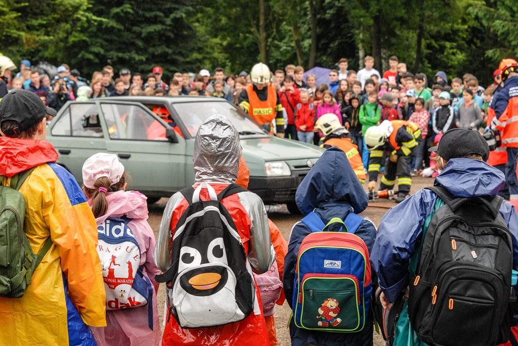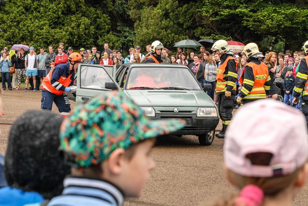Díky ukázce zásahu u dopravní nehody se děti dozvěděly, co mají jednotlivé složky na starost, jaká je jejich role i jaké mají například limity na dojezd k nehodě. Hasiči přímo před jejich zraky pomocí vyprošťovacího rozpínacího zařízení oddělili dveře vozu od karoserie. „Používáme nůžky nebo rozpínací zařízení. Dokážou odtrhnout jakékoliv části auta a přestříhnout jakýkoliv materiál. Pro představu, když člověka kousne pes, má to sílu 13 atmosfér, kousnutí lva má sílu 40 atmosfér, naše vyprošťovací zařízení má sílu 710 atmosfér. Pomocí vyprošťovacího zařízení dokážeme otevřít nejen auto, ale třeba i tank,“ komentovala zásah mluvčí krajských hasičů Pavla Jakoubková.