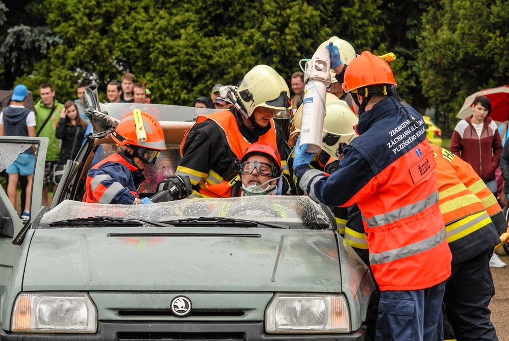 Ukázkou zásahu hasičů, záchranářů i policistů u dopravní nehody, při níž bylo nutné vystříhat z vozu zaklíněného těžce zraněného řidiče, začal dnes Plzeňský den s integrovaným záchranným systémem. Osmý ročník akce, kterou připravilo město Plzeň, přilákal do areálu za OC Plzeň Plaza několik stovek dětí. Připravil pro ně nejen statické i dynamické ukázky techniky a výcviku jednotlivých složek, ale také program zaměřený na prevenci. Děti zkoušely například chůzi ve speciálních brýlích simulujících stav opilosti, připoutány ve voze zjistily, co se děje v případě nárazu a rotace auta, trénovaly prvky první pomoci, plnily testy pro malé záchranáře a další.