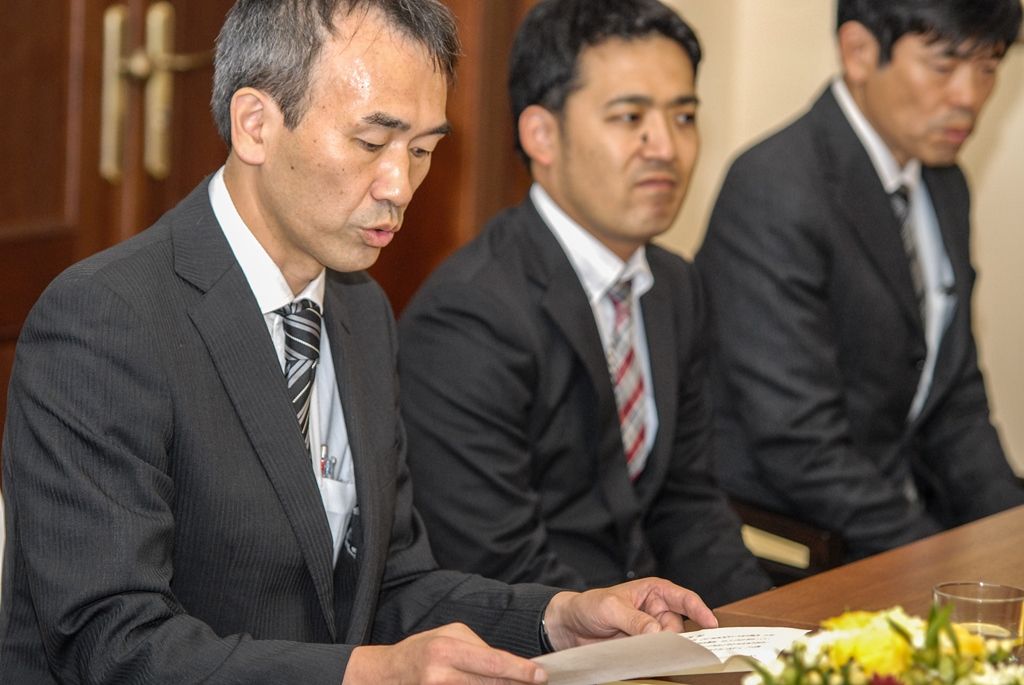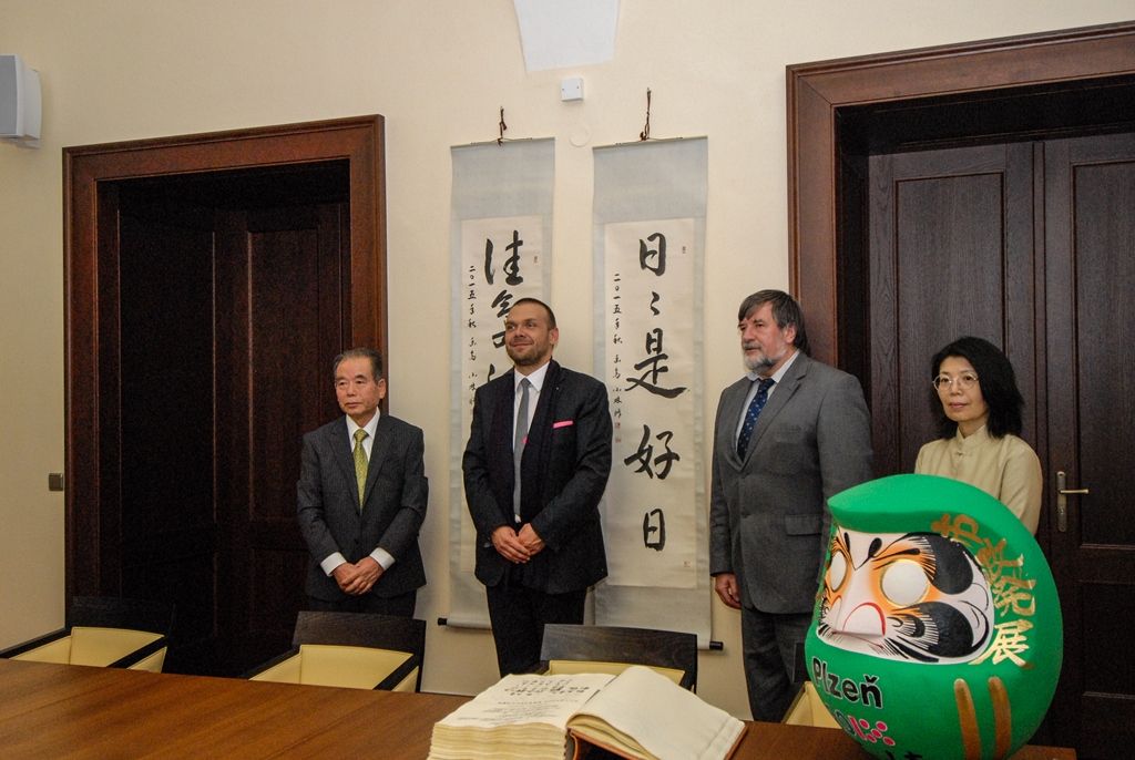 Mistry japonského umění a zástupce Takasaki přivítali u příležitosti oslav 25 let partnerství obou měst náměstci plzeňského primátora Martin Baxa a Petr Náhlík. Zástupci obou samospráv se shodli na dobře se vyvíjejících vztazích i na tom, že počáteční partnerství získalo díky vzájemné podpoře v těžkých situacích mnohem hlubší význam. Náměstek Martin Baxa vzpomněl na svou návštěvu Japonska v loňském roce a ocenil důležitost a krásu japonské kultury, která je letos v Plzni prezentována. Připomněl, že oslavy partnerství budou vyvrcholením celého ročního programu.