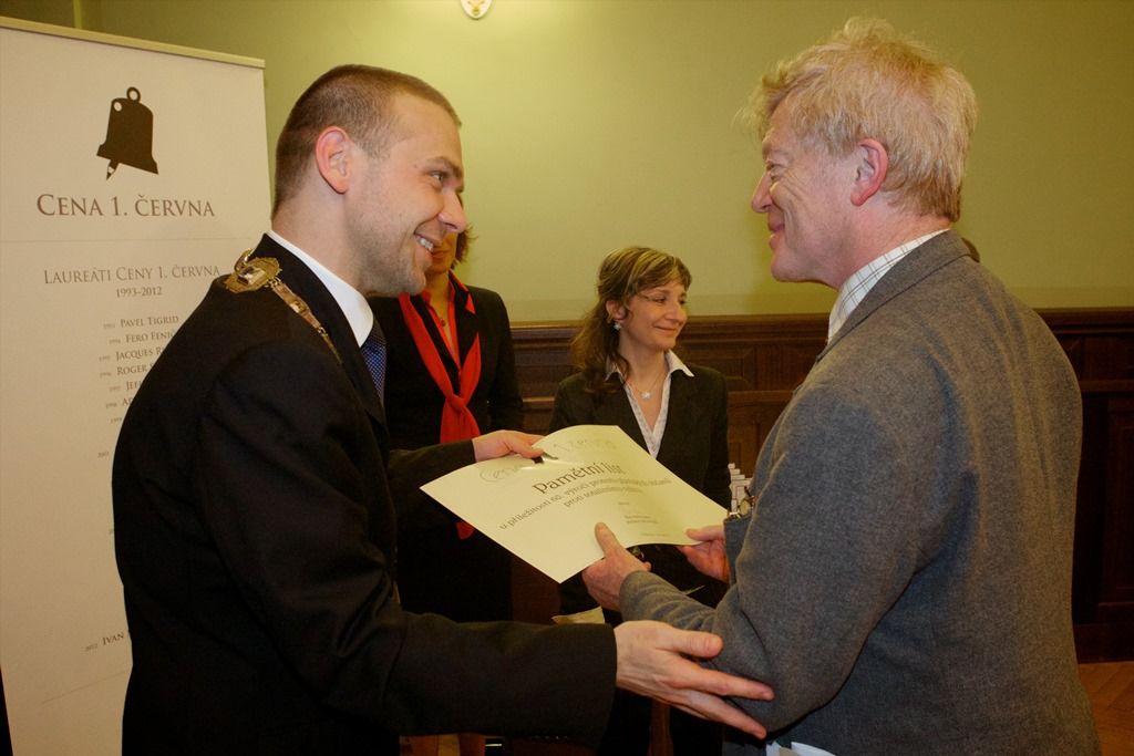 Primátor Martin Baxa tehdy připomněl, jak se plzeňští občané s nebývalou odvahou dokázali v roce 1953, tedy v čase politických vražd a věznění, postavit komunistickému režimu. Roger Scruton ve svém projevu zdůraznil, že Cena 1. června má stále obrovský význam. „V Evropě tvořené novými politickými silami se o komunismu jaksi mlčí – je odmítána diskuse o tom, co znamenal, stejně jako uznání veliké viny naší politické a intelektuální elity, která mu dala sílu,“ řekl. Promluvil také o lži a o strachu, který poutal naši zemi dlouho, a byl všude, zmínil se i o pravdě a nutnosti odpuštění. „Pravda je pro život důležitá, ale důležitější je, že bez pravdy není odpuštění,“ prohlásil mimo jiné.