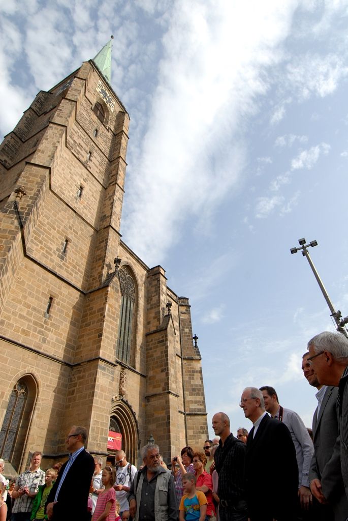 Třetí zvon pro katedrálu sv. Bartoloměje byl slavnostně představen veřejnosti. Odhalil jej primátor Martin Baxa společně s biskupem Františkem Radkovským.