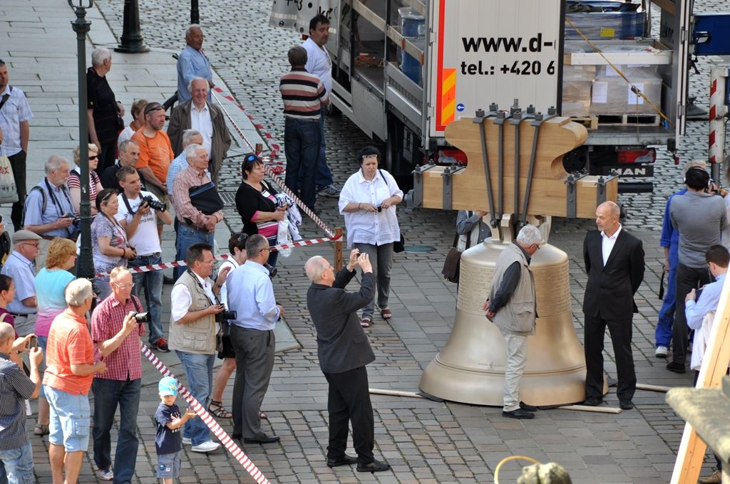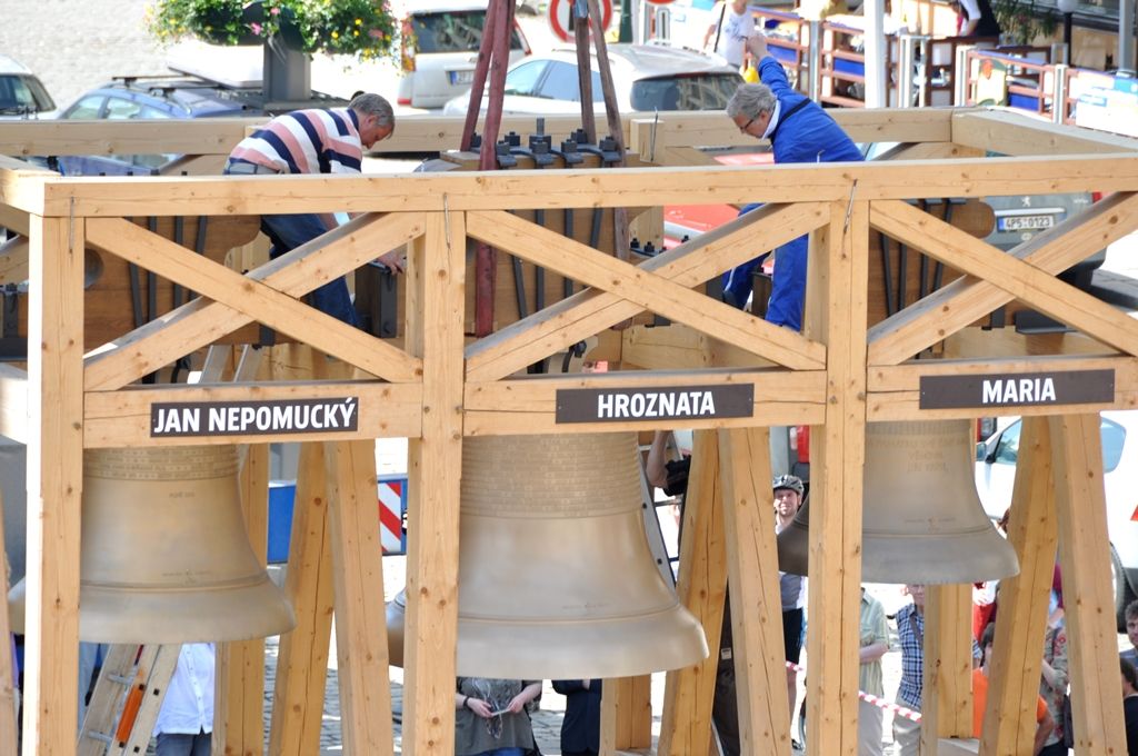 Zvony Maria a Jan Nepomucký odlil již loni v létě v nizozemské dílně pražský zvonař Petr Manoušek. Z jeho dílny je i Hroznata. Poslední a také největší zvon, více než pětitunový Bartoloměj, se bude odlévat v srpnu. Ten bude na náměstí k vidění jen pár dní před tím, než biskup František Radkovský zvonům požehná, aby mohly být vyzdviženy na věž, odkud se poprvé rozezní 17. ledna 2015. V tento den bude slavnostně zahájen projekt Evropské hlavní město kultury 2015.